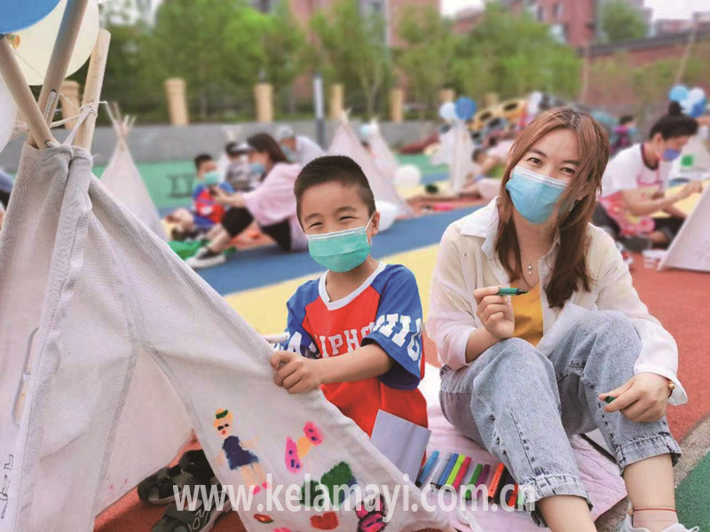 ????當(dāng)天,該園為孩子們準(zhǔn)備了棉麻布料的帳篷,在老師的指導(dǎo)下,孩子們將眼中看到的景色人物、心中最喜歡的事情用畫筆表達了出來,繪制出了屬于他們的獨一無二的帳篷。