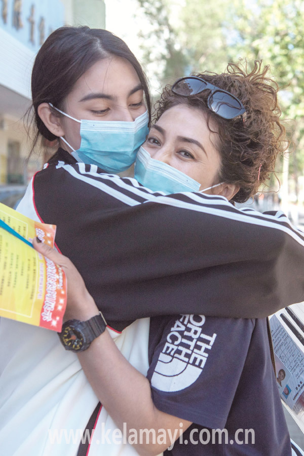 數(shù)學(xué)考試結(jié)束,家人手捧鮮花場外迎接孩子。本報全媒體記者 非爾代維斯·熱夏提 攝