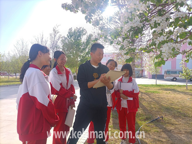 課后服務(wù)時(shí)間,第五中學(xué)學(xué)生在教師的指導(dǎo)下進(jìn)行校園植物觀察。