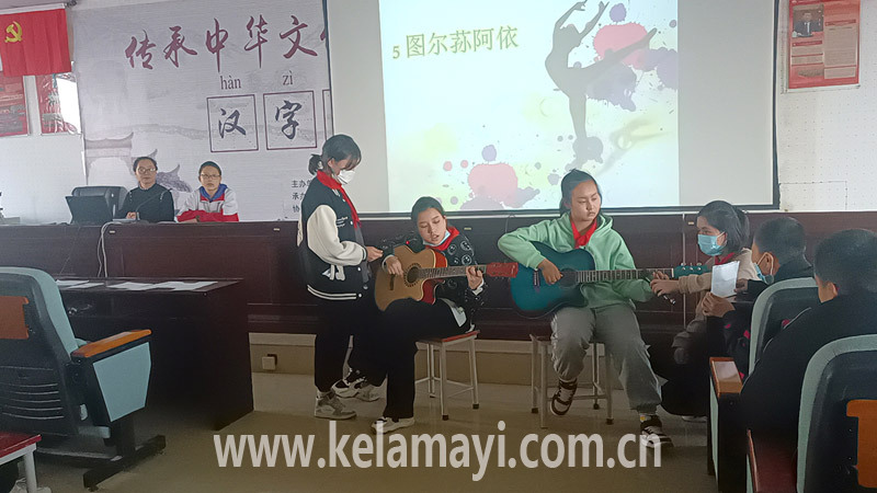 第五中學(xué)學(xué)生在課后服務(wù)時(shí)段參加吉他社團(tuán)。