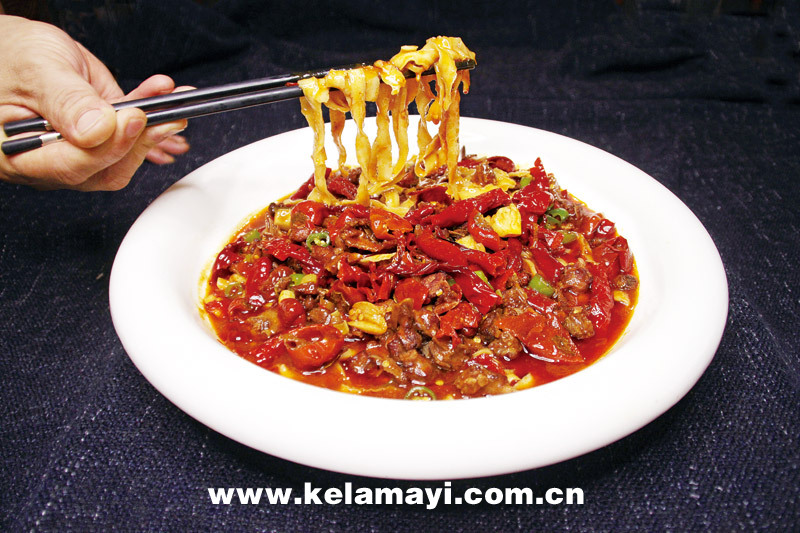 ????菜品總監(jiān)郭衛(wèi)東告訴記者,為了做好這道佳肴,團(tuán)隊在食材上下足了功夫,精選當(dāng)年散養(yǎng)的小乳鴿,皮帶面則是純手工制作的堿面,吃起來口感更好、更勁道。為了讓菜品的口感達(dá)到更高標(biāo)準(zhǔn),團(tuán)隊堅持以“用最新鮮的食材配以簡單的烹飪詮釋出食物最本真的味道”為宗旨,經(jīng)不斷篩選,選用焉耆縣辣椒,晾曬一個多月后,辣椒的營養(yǎng)成分高,吃起來也更加健康。