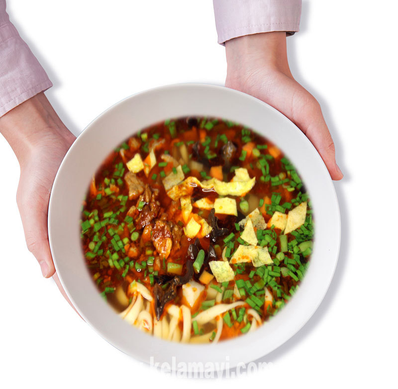 ????經(jīng)典組合的另一道菜品——岐山口口香臊子面同樣用料講究,制作精細,吃法特別,一直在陜西人心中占據(jù)重要的地位。制作臊子面的廚師李明告訴記者,正宗的岐山臊子面,講究的是薄、精、光,煎、稀、旺,酸、辣、香,這九個字,是岐山臊子面從面到湯和味的全部特點。