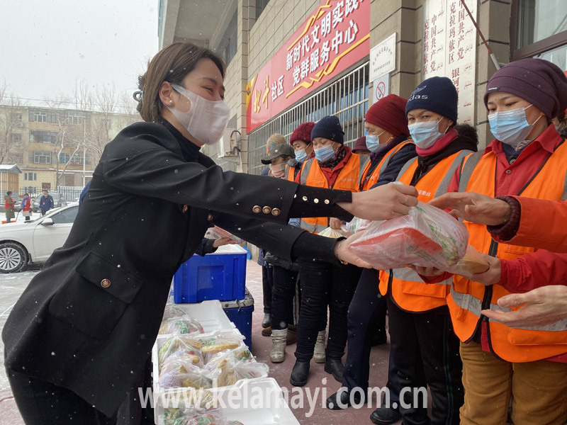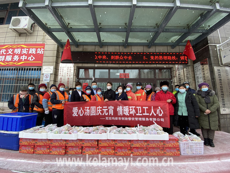 ????2月15日,正值中華傳統(tǒng)節(jié)日元宵節(jié),當(dāng)天,在漫天大雪中,創(chuàng)馳餐飲管理與服務(wù)有限公司企業(yè)代表將元宵節(jié)溫暖禮包送到了120名環(huán)衛(wèi)工人的手中,用溫情為他們驅(qū)散寒意。