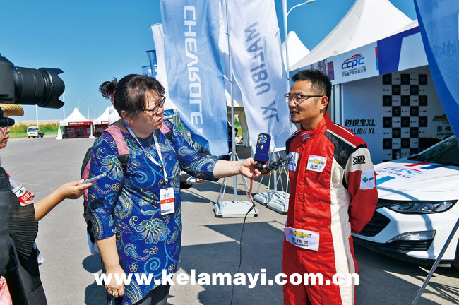 賽車手接受國內(nèi)媒體采訪。