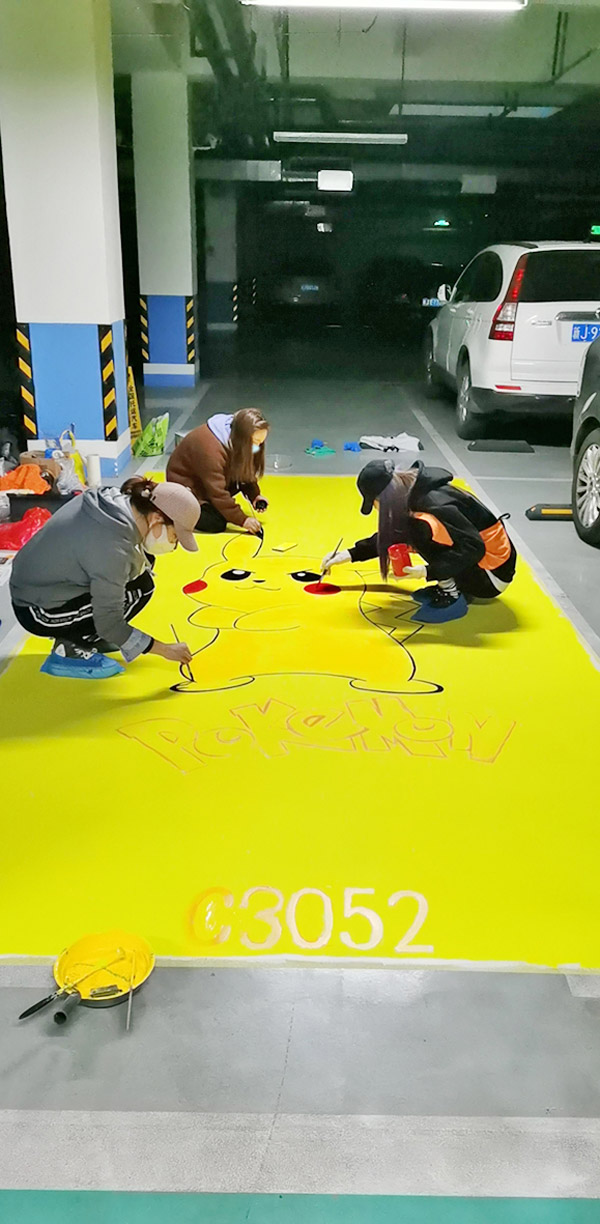 ????“想要‘改造’自己的停車位,車主首先需和物業(yè)公司進(jìn)行協(xié)商,隨后把想要繪制的畫面提供給我們,就可以預(yù)約時(shí)間進(jìn)行創(chuàng)作了?!敝鞂毾颊f,“我們也非常鼓勵(lì)車主自行創(chuàng)作,發(fā)揮創(chuàng)意;家長更可以帶著孩子參與其中,感受在地面作畫的樂趣。如有需要,我們非常愿意對(duì)有創(chuàng)作意愿的車主進(jìn)行指導(dǎo)?!?/p>
