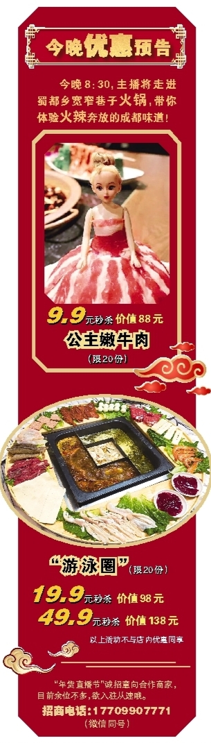 ????目前,“年貨直播節(jié)”已迎來(lái)了第三批新商家的入駐,比如蜀都鄉(xiāng)寬窄巷子火鍋,讓消費(fèi)者足不出戶在家置辦年貨的同時(shí),還能盡享“舌尖上的年味”。