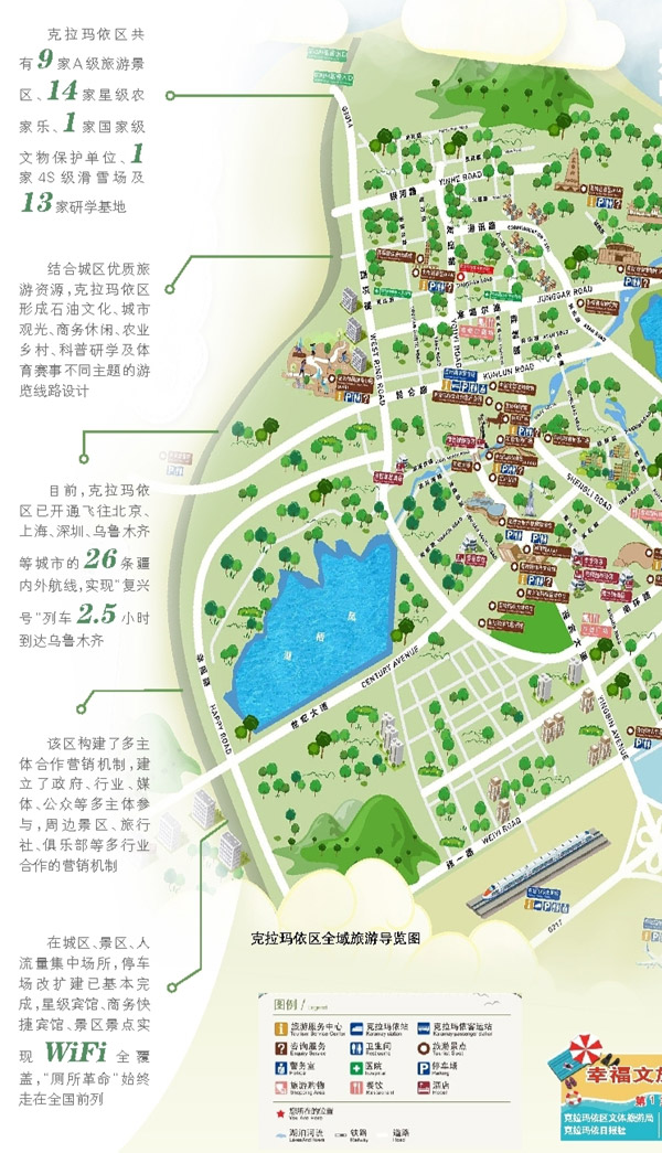 ????結合城區(qū)優(yōu)質(zhì)旅游資源,克拉瑪依區(qū)形成石油文化、城市觀光、商務休閑、農(nóng)業(yè)鄉(xiāng)村、科普研學及體育賽事不同主題的游覽線路設計。